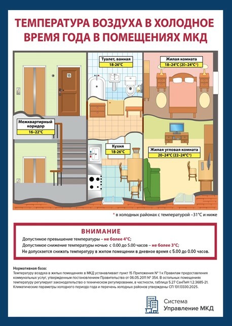 Памятка. Нормативная температура воздуха в холодное время года в помещениях МКД