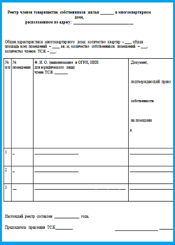 Обязанность ведения реестра членов ТСЖ возлагается на правление ТСЖ (ч. 7 ст. 148 ЖК). Реестр нужно вести непрерывно, в нем должны быть отражены все изменения, касающиеся идентификации членов ТСЖ, размера долей в праве общей собственности на общее имущество в МКД. Листы реестра необходимо пронумеровывать и прошивать.