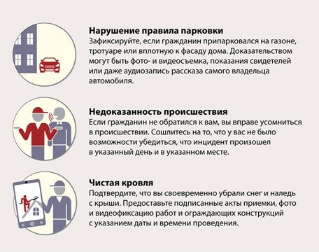 Меру ответственности определяют в каждом случае индивидуально. Она может зависеть от места расположения автомобиля в момент падения снега и льда, содержания акта, в котором зафиксировали повреждение автомобиля.