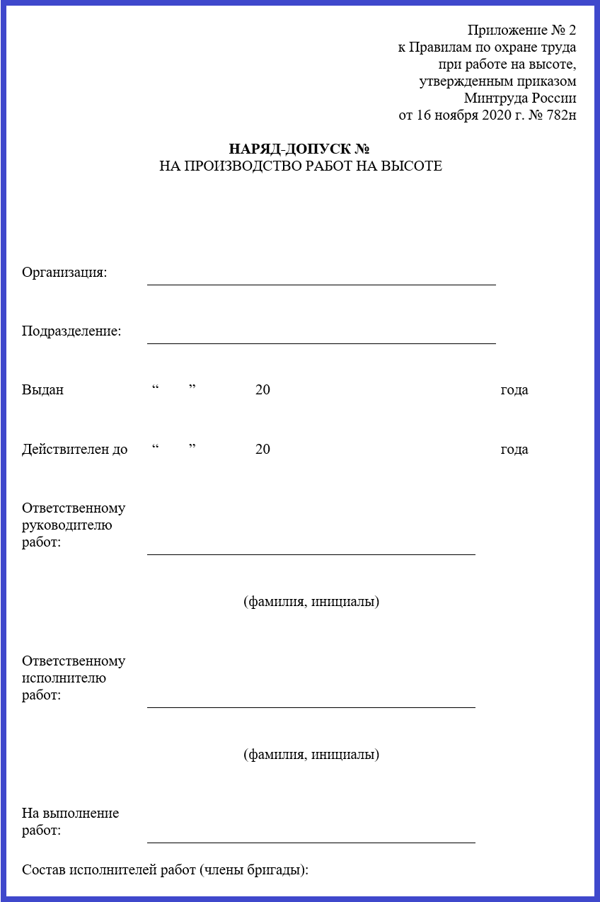 Такой порядок определен пунктом 16 Правил по охране труда при работе на высоте, утвержденных приказом Минтруда от 16.11.2020 № 782н (далее – Правила № 782н).