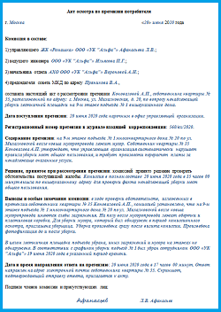 Рисунок 1. Пример акта осмотра по претензии потребителя