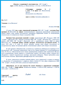 Если доводы не имеют отношения к управлению МКД, а выражают общее недовольство сферой ЖКХ или личную неприязнь к УО, ТСЖ, юрист также даст им оценку. Оставлять такое обращение без внимания не следует.