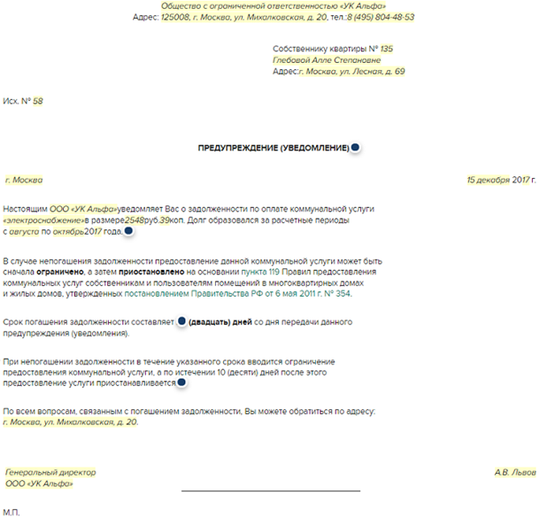 Исполнитель КУ имеет право ограничить, приостановить КУ за долги по их оплате или при необходимости проведения ремонтно-профилактических работ. В этих случаях обязательно уведомьте жителя о предстоящем ограничении, приостановлении КУ.