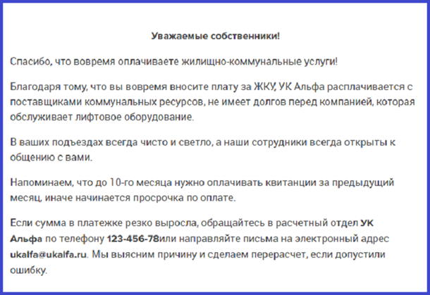Ниже привели примеры сообщений жителям об обязанности оплачивать ЖКУ.