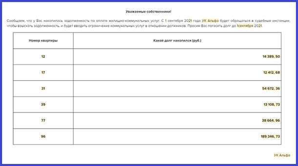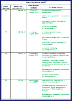 Читайте отдельно, как составить список должников, чтобы получить оплаты от жителей.