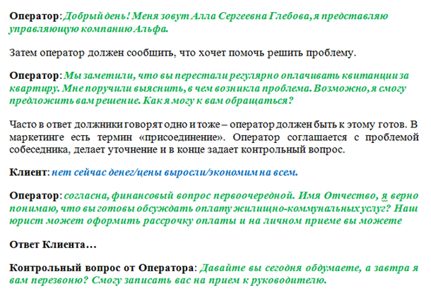 В первую очередь, по телефону с должниками работают коллекторские агентства. Закон запрещает передавать коллекторам право взыскивать просроченную задолженность граждан за ЖКУ (ч. 18 ст. 155 ЖК). Управляющие МКД организации не обязаны соблюдать условия и ограничения, предусмотренные в статье 7 Закона от 03.07.2016 № 230-ФЗ. Мы рекомендуем применять отдельные инструменты из арсенала коллекторов и делать это с соблюдением делового этикета.