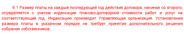 Дело в том, что условие об индексации противоречит пункту 2 статьи 310 ГК и суды признают его незаконным. В 2017 году Верховный суд разъяснил, что изменение фиксированного размера платы возможно исключительно на основании решения ОСС (п. 17 постановления Пленума Верховного суда от 27.06.2017 № 22, определение Верховного суда от 02.06.2017 № 306-КГ17-6867).