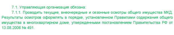 11 апреля 2018 года введены новые правилаосмотра общего имущества в МКД. Ранее осмотры делились на плановые и внеплановые. Теперь они бывают трех видов: текущие, сезонные и внеочередные. Порядок осмотров регулирует пункт 13(1) Правил содержания общего имущества в многоквартирном доме, утвержденных постановлением Правительства от 13.08.2006 № 491 (далее – Правила № 491).