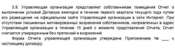 Когда будете обновлять свой договор управления, воспользуйтесь этим и предложите форму отчета и способ его предоставления. Укажите в своем договоре, что при отсутствии письменных мотивированных возражений собственников, направленных в адрес УО в течение 15 дней с момента представления отчета, он считается утвержденным без претензий и возражений.