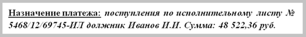 Отследить поступления от пристава можно также по выписке с расчетного счета. По поступлениям от судебных приставов, в выписке будет присутствовать следующая запись: