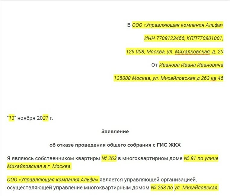 Собственники помещений вправе представить управляющей МКД организации письменные отказы от проведения ОСС с помощью системы. Они должны сделать это за пять рабочих дней до даты первого собрания в порядке, который указан в уведомлении.
