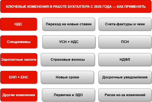 КЛЮЧЕВЫЕ ИЗМЕНЕНИЯ В РАБОТЕ БУХГАЛТЕРА С 2026 ГОДА — КАК ПРИМЕНЯТЬ
