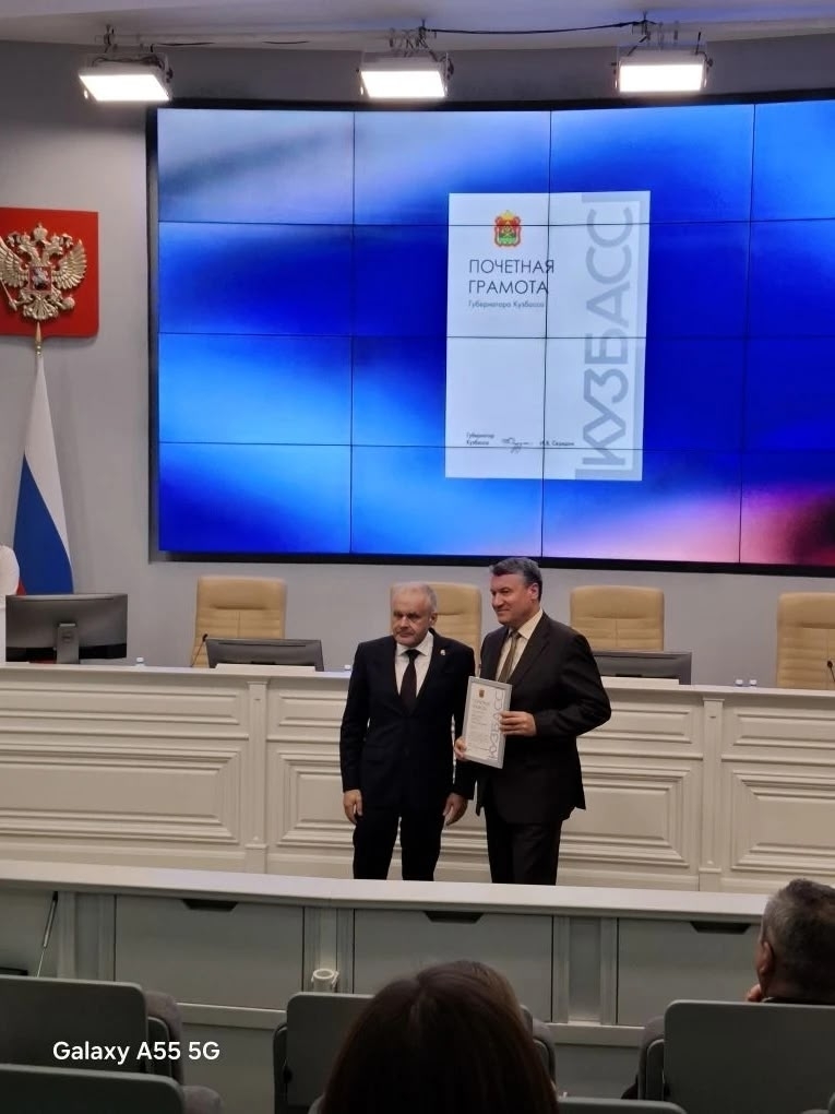 Заместитель Губернатора Глеб Владимирович Орлов вручил почетную грамоту Губернатора Кузбасса Редозубову Дмитрию за выдающиеся заслуги в профессиональной сфере, добросовестный и многолетний труд, большой вклад в развитие жилищно-коммунального хозяйства Кузбасса.